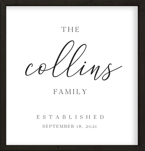 24x24 Thin Black Custom Stacked Family Name Sign (WHITE CANVAS)